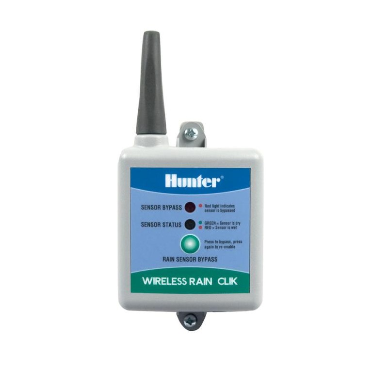 Hunter Rain-Clik – WR-Clik je bezdrôtový rýchlo reagujúci dažďový senzor. Zatiaľ čo väčšina senzorov deaktivuje zavlažovanie, keď dosiahne vopred stanovené množstvo zrážok, Rain-Clik – WR-Clik zakáže zavlažovanie pre malé množstvo zrážok. Pod vplyvom vlhkosti sa disky vo vnútri roztiahnu už aj pri malom množstve dažďa, ktorý zapína mikrospínač, ktorý prerušuje obvod na ovládači, takže zavlažovanie sa zastaví. Senzor Rain-Clik – WR-Clik je normálne uzavretý senzor, ktorý je možné prevádzkovať v spojení s elektronickými ovládačmi, ktorý boli nato vytvorený (napr.: Hunter, Rain Bird, Rain). Čas sušenia je možné regulovať otváraním alebo zatváraním prieduchov, ktoré je možné použiť na sledovanie doby sušenia nášho trávnika. Týmto spôsobom náš zavlažovací systém reštartuje, keď je to skutočne potrebné. Inštalácia je mimoriadne jednoduchá a má širokú škálu prijímačov, nerezových konzol a skrutiek. Veľmi spoľahlivý dažďový senzor, ktorý po inštalácii nevyžaduje údržbu. Komunikuje s prijímačom pomocou rádiových vĺn, čo umožňuje umiestnenie senzora až do vzdialenosti 244 m od prijímača. Dodaná batéria bude pracovať so senzorom až 10 rokov.
