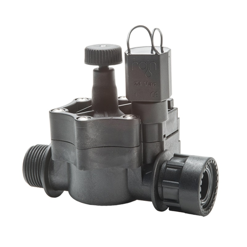 Rain RN 155 PLUS FC 24VAC – 1″MxUN – PRO s 1″ vonkajším/holendrovým závitom je 24 V elektromagnetický ventil s pomalým uzatváraním, na ktorom je možné regulovať prietok vody. Bol vyvinutý na zavlažovanie rodinných domov a malých parkov. Ak tlak v našom systéme prekročí optimálny prevádzkový tlak trysiek, odporúčame použiť elektroventil s regulátorom prietoku. S regulátorom prietoku sa dá znížiť prierez prúdu a následne znížiť tlak tak, aby sa tlak mohol nastaviť na optimálnu hodnotu. Fungujú dobre aj pri nízkom prietoku vody.Fungovanie elekroventila: