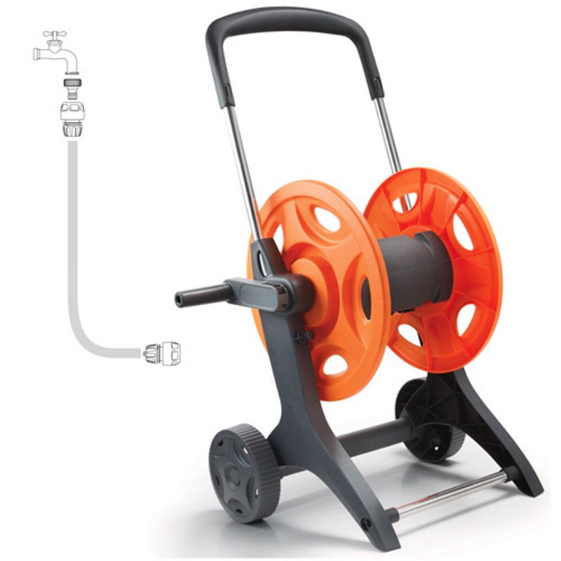Vďaka hadicovému vozíku EUROTANK je možné našu hadicu uložiť priestorovo úsporne, vozík sa ľahko používa. Vhodný na skladovanie až 60 m 1/2″ hadice alebo 40 m 3/4″ hadice, vďaka čomu je vynikajúci pre stredné a veľké záhrady. Mimoriadne spoľahlivý a odolný produkt. Bubon na hadicu sa dodáva s 2 rýchlospojkami na hadicu 1/2″. Hadica nie je súčasťou dodávky.