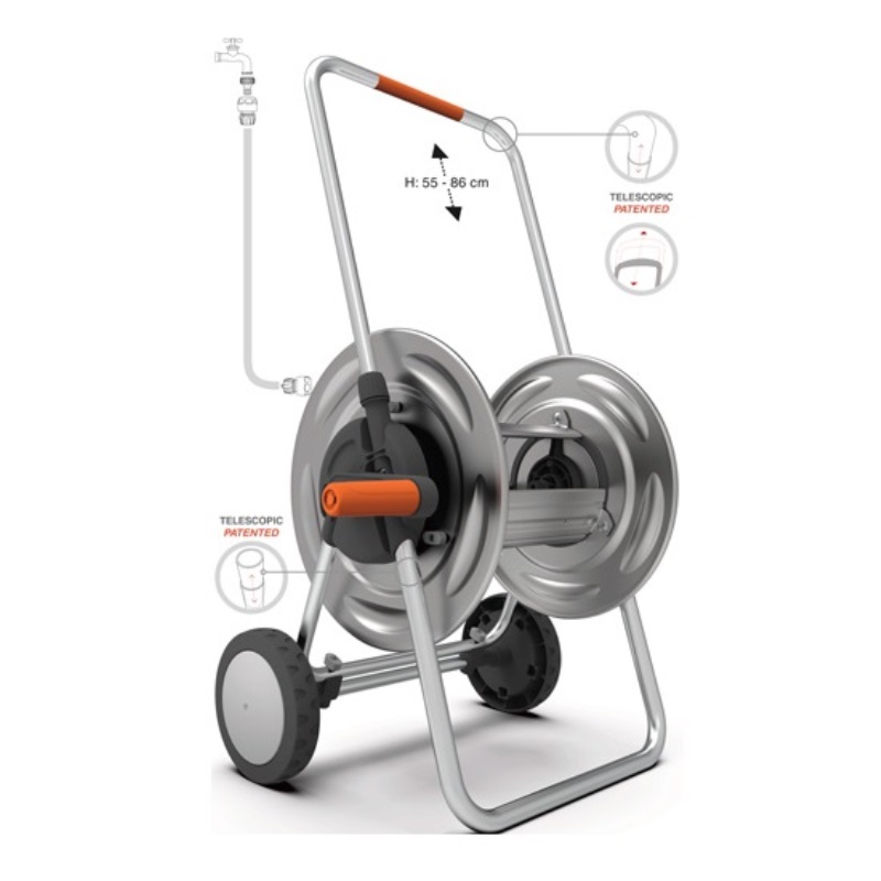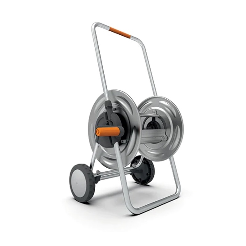 Vďaka hadicovému vozíku METAL TANK 75 je možné našu hadicu uložiť priestorovo úsporne, vozík sa ľahko používa. Vhodný na skladovanie až 60 m 1/2″ hadice alebo 40 m 3/4″ hadice, vďaka čomu je vynikajúci pre stredné a veľké záhrady. Mimoriadne spoľahlivý a odolný produkt. Bubon na hadicu sa dodáva s 2 rýchlospojkami na hadicu 1/2″. Hadica nie je súčasťou dodávky.