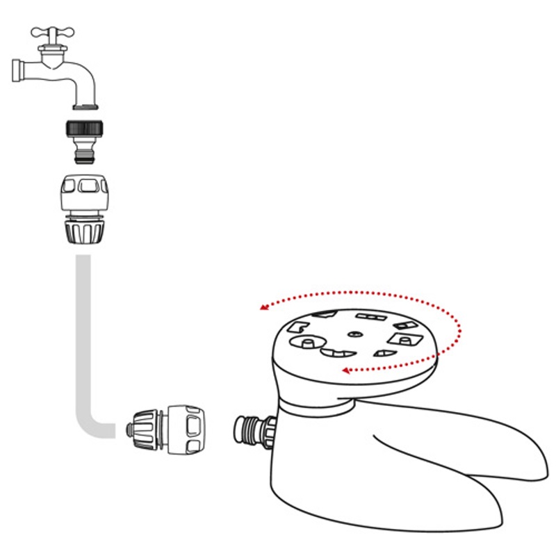 Zavlažovač DRIVER 8-funkčný s podstavcom je jednoduché a lacné riešenie na zavlažovanie našej záhrady. Ľahko umiestniteľný robustný podstavec zaručuje, že zostane na svojom mieste až do konca zavlažovania. Je vybavený spojkovým konektorom, ku ktorému je možné pripojiť jedným ťahom ľubovolnú záhradnú hadicu s veľkosťou 1/2″ alebo 3/4″ rýchlospojkou. Dokáže zavlažovať naraz až 100 m2. Má 8 druhy vodného prúdu, ktoré je možné ľahko upraviť. Tečúca voda zaisťuje rotačný pohyb zavlažovača, jej chod je takmer nehlučný, takže je možné ju prevádzkovať v noci aj pomocou ovládača. Poskytuje mimoriadne rovnomerné zavlažovanie pri prevádzkovom tlaku 2-4 bar.