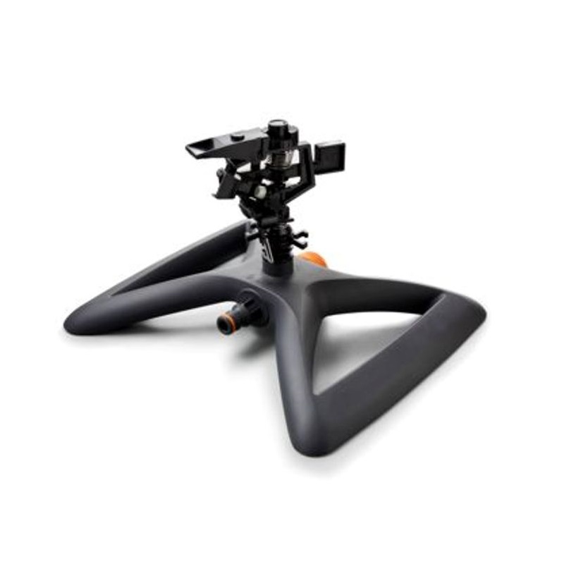 Zavlažovač impulzný plast s podstavcom je jednoduché a lacné riešenie na zavlažovanie našej záhrady. Ľahko umiestniteľný robustný podstavec zaručuje, že zostane na svojom mieste až do konca zavlažovania. Je vybavený spojkovým konektorom, ku ktorému je možné pripojiť jedným ťahom ľubovolnú záhradnú hadicu s veľkosťou 1/2″ alebo 3/4″ rýchlospojkou. Jeho uhol zavlažovania je možné nastaviť medzi 15° a 360° a môže zavlažovať až 12 m. Poskytuje mimoriadne rovnomerné zavlažovanie pri prevádzkovom tlaku 2-4 bar. Pripojením rýchlospojkou je možné zapojiť niekoľko zavlažovačov do série.
