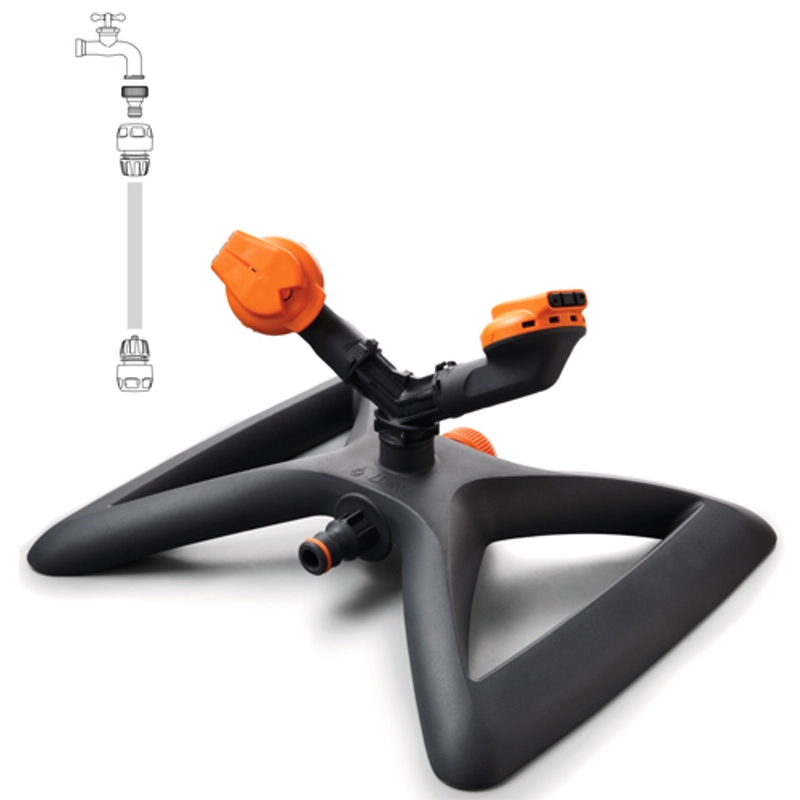 Zavlažovač SUPER ROTAX s podstavcom je jednoduché a lacné riešenie na zavlažovanie našej záhrady. Ľahko umiestniteľný robustný podstavec zaručuje, že zostane na svojom mieste až do konca zavlažovania. Je vybavený spojkovým konektorom, ku ktorému je možné pripojiť jedným ťahom ľubovolnú záhradnú hadicu s veľkosťou 1/2″ alebo 3/4″ rýchlospojkou. Jeho uhol zavlažovania je 360° a môže zavlažovať až 7 m. Poskytuje mimoriadne rovnomerné zavlažovanie pri prevádzkovom tlaku 2-4 bar.