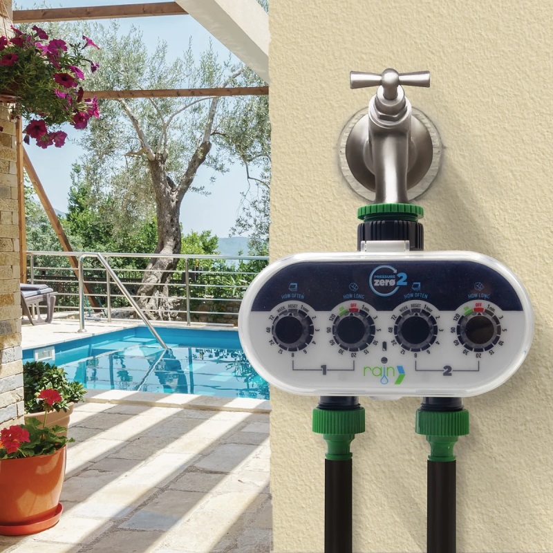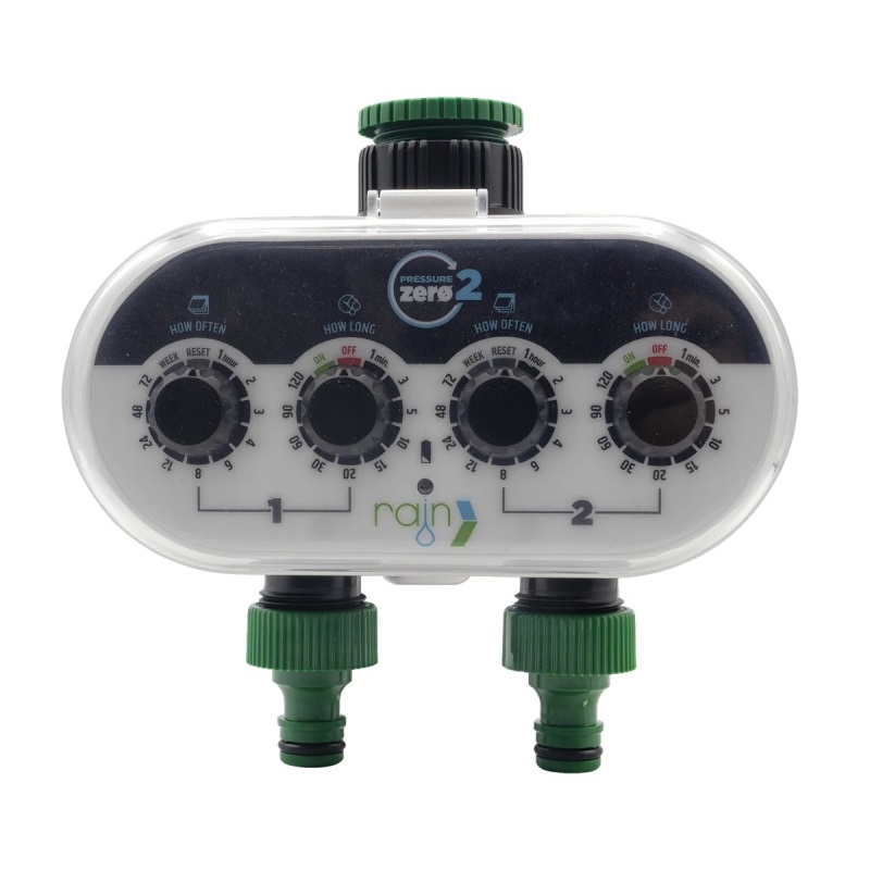 Rain ZERO Pressure 2 je 2-okruhový ovládač s batériou. Spoľahlivá automatizácia určená predovšetkým na zavlažovanie menších záhrad, kvetinových záhrad alebo kvetinových krabíc. Jeho programovanie je veľmi jednoduché, je navrhnuté tak, aby ho mohol vykonať každý.