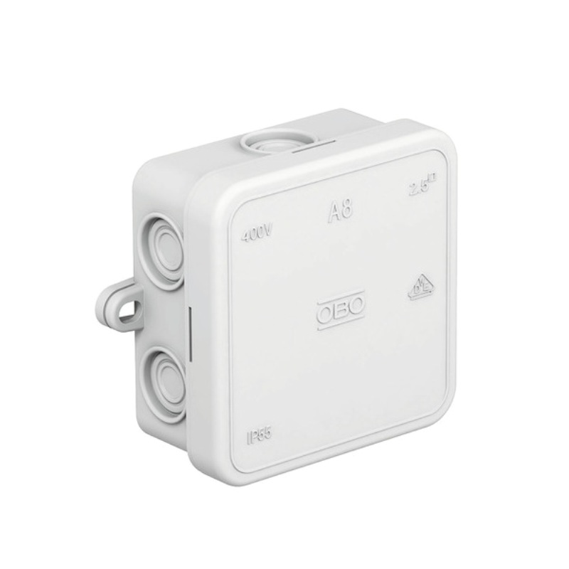 Rozbočovacie krabice OBO série A predstavujú spoľahlivé a odolné riešenie na rozvod a spojovanie elektrických vodičov. Sú vyrobené z pevného, nárazuvzdorného plastu a disponujú vysokým stupňom krytia IP55, vďaka čomu sú vhodné pre vnútorné aj vonkajšie elektroinštalácie.