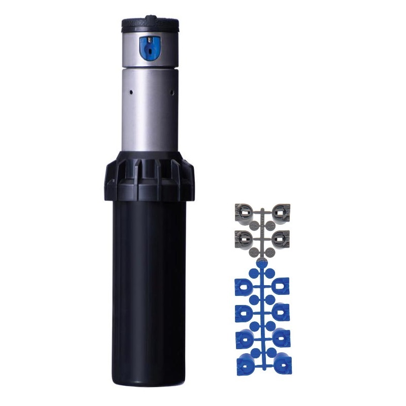Rotačný postrekovač z nehrdzavejúcej oceľe Hunter I-20-04-SS – FloStop disponuje 10 cm-ovým výsuvníkom, ktorý je vybavený vnútorným 3/4″ pripojovacím závitom. Vďaka sade trysiek dokáže zavlažovať plochu 4,9-14,0 m.