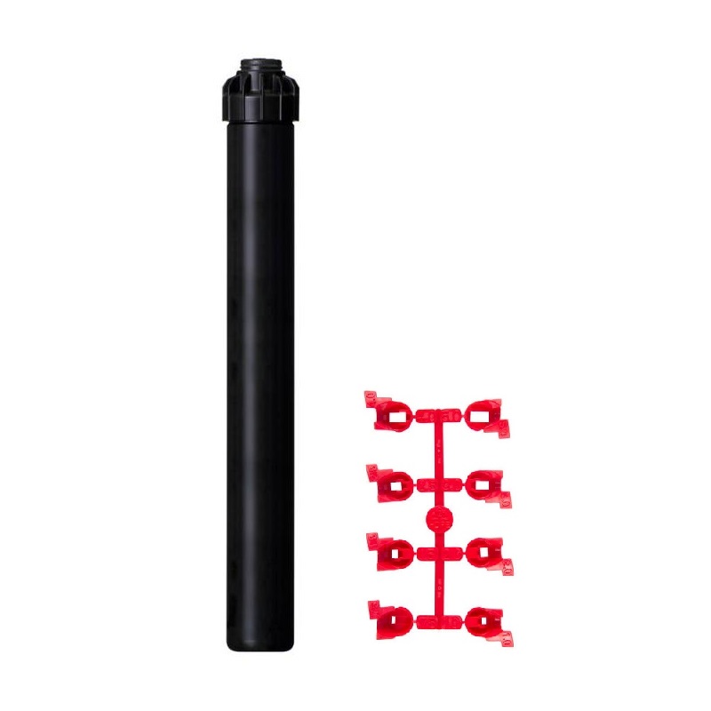 Rotačný postrekovač Hunter PGJ-12 disponuje 30 cm-ovým výsuvníkom, ktorý je vybavený vnútorným 1/2″ pripojovacím závitom. Vďaka sade trysiek dokáže zavlažovať plochu 4,3-11,6 m.