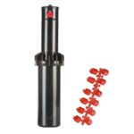 Rotačný postrekovač Rain S050 S disponuje 10 cm-ovým výsuvníkom, ktorý je vybavený vnútorným 1/2″ pripojovacím závitom. Vďaka sade trysiek dokáže zavlažovať plochu 5,5-10,7 m.