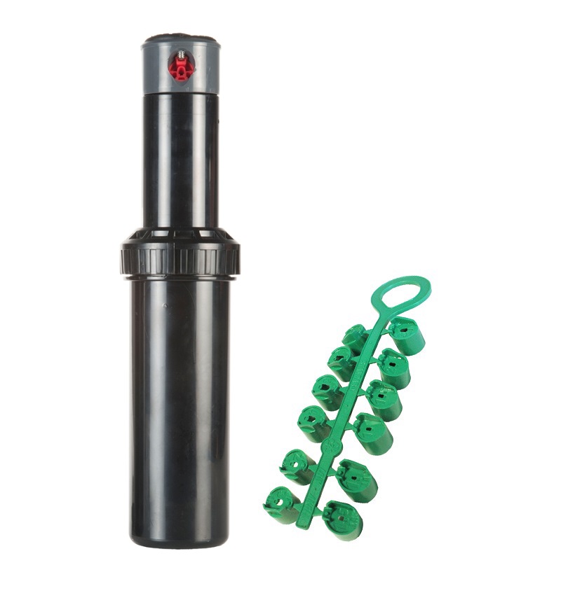 Rotačný postrekovač so spätným ventilom Rain S075 S disponuje 10 cm-ovým výsuvníkom, ktorý je vybavený vnútorným 3/4″ pripojovacím závitom. Vďaka sade trysiek dokáže zavlažovať plochu 7,9-14,0 m.