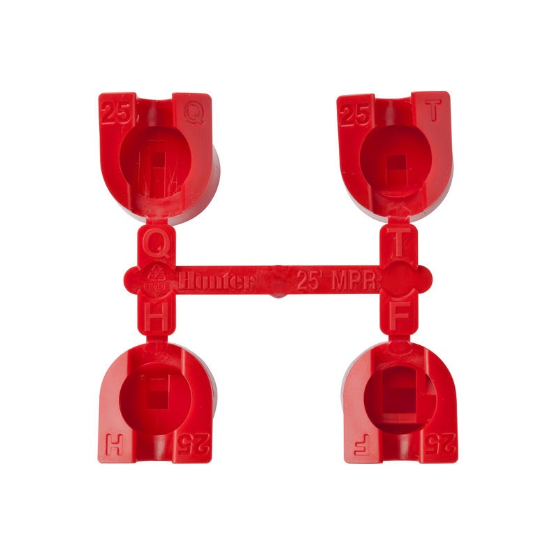 Sada trysiek MPR-25 obsahuje trysky s vysokým prietokom pre rotačné postrekovače Hunter PGP Ultra a I-20. Používa sa na závlahu plochy vo vzdialenosti 7,0-7,6 m. Vďaka tryskám na jednej sekcii s rozdielným rozptylom zrážok dokážeme zavlažovať plochy s rozdelenými veľkosťami.