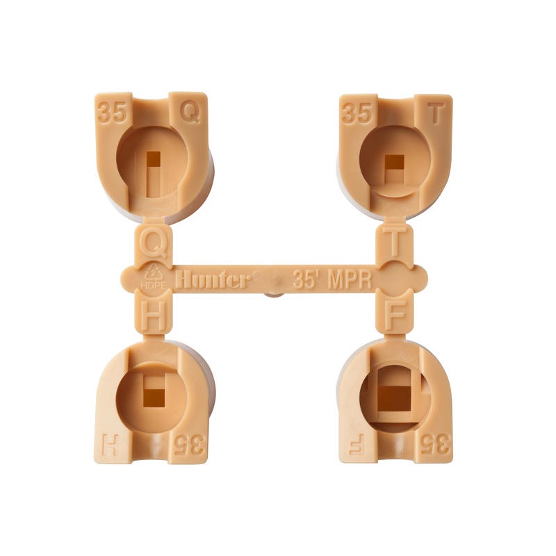 Sada trysiek MPR-35 obsahuje trysky s vysokým prietokom pre rotačné postrekovače Hunter PGP Ultra a I-20. Používa sa na závlahu plochy vo vzdialenosti 9,8-10,7 m. Vďaka tryskám na jednej sekcii s rozdielným rozptylom zrážok dokážeme zavlažovať plochy s rozdelenými veľkosťami.
