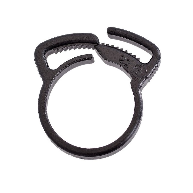 Plastová spona je jednoduchý a efektívny fixačný prvok, určený na zabezpečenie spojov medzi LDPE potrubím a nástrčnými spojkami. Použitím spony sa zabraňuje vysunutiu hadice zo spojky, čo je dôležité najmä pri tlakovom namáhaní alebo kolísaní teplôt.