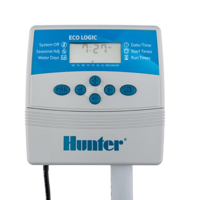 Hunter Eco Logic je ľahko programovateľný ovládač so všetkými dôležitejšími funkciami navrhnutý pre menšie záhrady. Je to vysoko spoľahlivý a dlhodobý produkt s vyváženým výkonom. Tento typ ovládača je k dispozícii iba vo verzii interiér so 4 alebo 6 zónami. Vďaka veľmi jednoduchému a prehľadnému návodu môže každý ľahko pochopiť, ako nastaviť programy, spustiť alebo zastaviť zavlažovanie. Ovládače Hunter sú vybavené diagnostickým programom Quick Check, ktorý uľahčuje zistenie akýchkoľvek problémov s kábelážou. Funguje zo siete, ale pomocou batérie (nie je súčasťou) nestratí nastavené programy, ak dôjde k strate energie. Riadiaca jednotka ELC má 3 rôzne režimy: