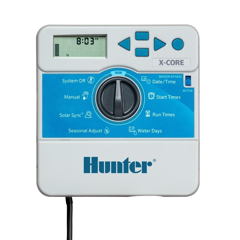 Hunter X-Core je vylepšená verzia populárneho ovládača XC. Zachoval si všetky dobré vlastnosti svojho predchodcu a bol ďalej vylepšený o nenahraditeľné a hospodárne prevádzkové vlastnosti. Jeden z najspoľahlivejších a dlhodobo stabilných a vyvážených výkonových produktov na trhu. Tento typ ovládača je k dispozícii vo vnútornej aj vonkajšej verzii, ako aj vo verziách s 2, 4, 6 alebo 8 zónami. Vďaka veľmi jednoduchému a prehľadnému návodu môže každý ľahko pochopiť, ako nastaviť programy, spustiť alebo zastaviť zavlažovanie. Ovládače Hunter sú vybavené diagnostickým programom Quick Check, ktorý uľahčuje zistenie akýchkoľvek problémov s kábelážou. Funguje zo siete, ale nestratí nastavené programy, ak dôjde k strate energie.
