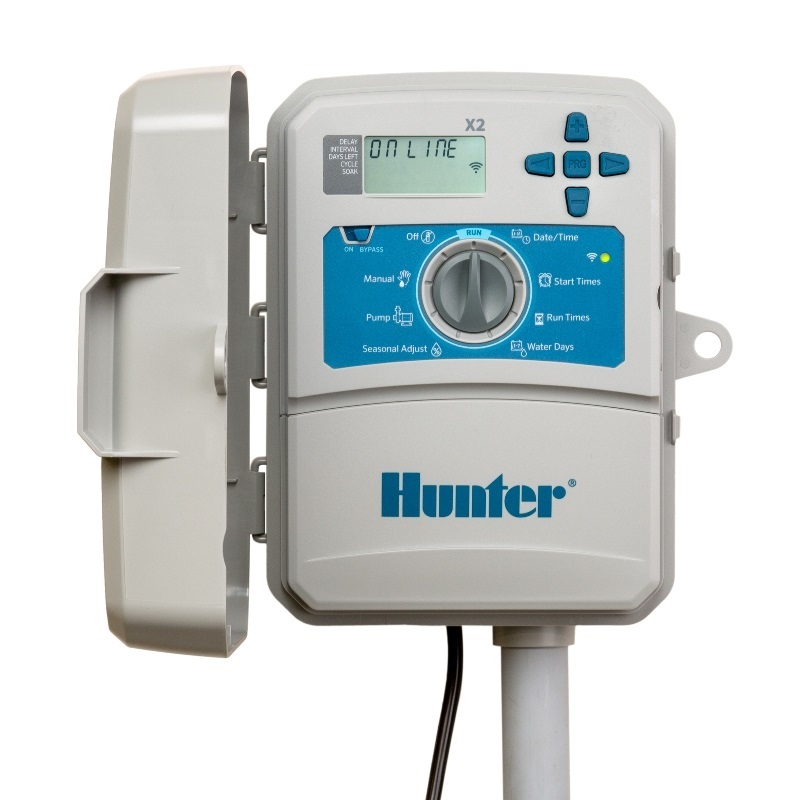 Hunter X2 je vylepšená verzia populárneho ovládača X-Core. Jeden z najspoľahlivejších a dlhodobo stabilných a vyvážených výkonových produktov na trhu. Tento typ ovládača je k dispozícii vo vonkajšej verzii s 4, 6, 8 alebo 14 zónami. Vďaka veľmi jednoduchému a prehľadnému návodu môže každý ľahko pochopiť, ako nastaviť programy, spustiť alebo zastaviť zavlažovanie. Ovládače Hunter sú vybavené diagnostickým programom Quick Check, ktorý uľahčuje zistenie akýchkoľvek problémov s kábelážou. Funguje zo sieťe, ale nestratí nastavené programy, ak dôjde k strate energie. Ovládače X2 sú navrhnuté tak, aby boli transformované na inteligentný ovládač pomocou modulu WiFi. Týmto spôsobom sa dá cez internet ľahko vykonať všetky nastavenia.