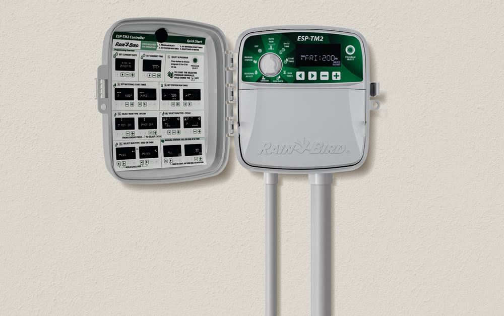 Rain Bird ESP-TM2 je ľahko programovateľný, vysoko sofistikovaný ovládač navrhnutý špeciálne pre veľkých záhrad, parkov a priemyselných plôch. Spoločnosť kladie veľký dôraz na uľahčenie inštalácie, programovanie a údržby svojich ovládačov. Tento typ ovládača je k dispozícii vo vonkajšej verzii, ako aj vo verziách s 4, 6, 8 alebo 12 zónami. Vďaka veľmi jednoduchému a prehľadnému návodu môže každý ľahko pochopiť, ako nastaviť programy, spustiť alebo zastaviť zavlažovanie. Funguje zo sieťe, ale nestratí nastavené programy, ak dôjde k strate energie. Tieto ovládača sú vybavené diagnostickým programom, ktorý uľahčuje zistenie akýchkoľvek problémov s kábelážou. Ovládače ESP-TM2 sú navrhnuté tak, aby boli transofrmované na inteligentný ovládač pomocou modulu WiFi. Týmto spôsobom sa dá v telefóne ľahko vykonať všetky nastavenia.
