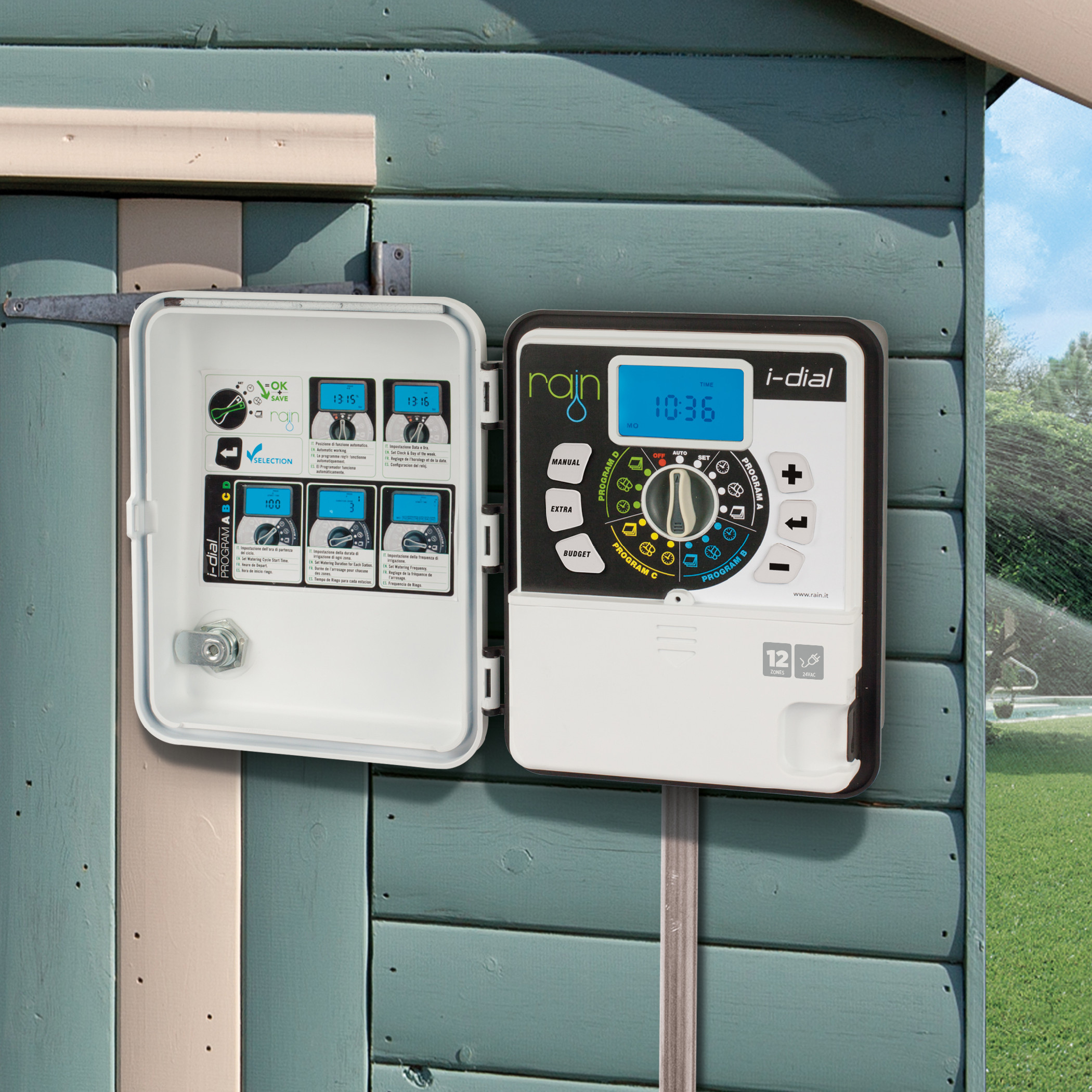 Rain I-Dial je ľahko programovateľný ovládač navrhnutý pre domáce záhrady a malé verejné priestory. Je to vysoko spoľahlivý a dlhodobý produkt s vyváženým výkonom. Tento typ ovládača je k dispozícii sieťovej alebo batériovej, vnútornej a vonkajšej verzii a vo verziách 4, 6, 8 alebo 12 zón. Vďaka veľmi jednoduchému a prehľadnému návodu môže každý ľahko pochopiť, ako nastaviť programy, spustiť alebo zastaviť zavlažovanie. Ovládač pri výpadku energie nestratí nastavené progamy v dôsledku 2 alkalických batérií 1,5 V AA (nie je súčasťou dodávky). Ovládače Rain fungujú pomocu jednoduchého 3-krokového programovania: